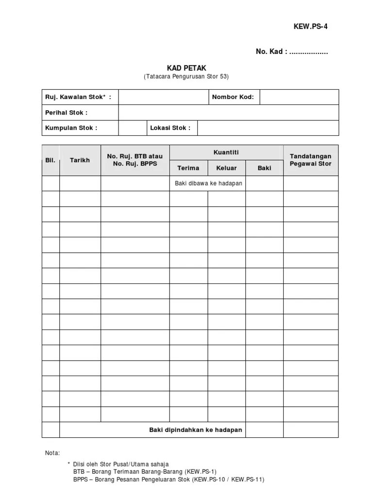 Borang senarai daftar kad kawalan stok. Kod unit pengukuran lokasi stor pusat stor . Stor utama jabatan pendaftaran negara negeri sembilan. Trainees2013 senarai daftar kad kawalan stok kewps 5. Kew ps 4 baru cute766.